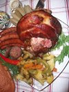 Prima data am crestat muschiuletii in trei pe lungime si i-am condimentat cu sare, boia si piper, apoi i-am impletit. Am portionat si pulpa de porc, am asezat-o in tava, am condimentat, am...