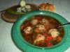 Intr-o oala sub presiune punem la fiert carnea pana este aproape gata. Adaugam zarzavatul, ceapa, ardeii tocati...