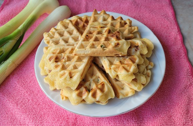 Aperitiv vafe cu ceapa verde
