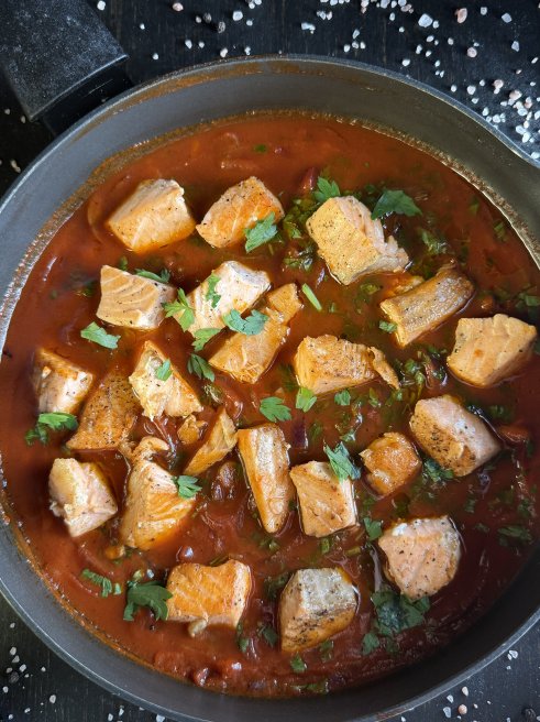 Somon cu sos de roșii și pătrunjel - Rețeta gustoasă și rapidă