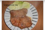 Clatim feliile de vita, le punem pe un servet de hartie sa absoarba apa. Le condimentam cu sare si piper si le lasam deoparte. Pregatim amestecul format din 2 oua si faina, dam feliile de vita si le punem in ulei la prajit. Cand sunt gata se scot pe un servet de hartie. Se pot servi cu salata...