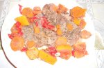 Carnea se asezoneaza cu condimente,se stropeste cu ulei de masline si vin rosu si se lasa 30 minute la rece la marinat. Se adauga in tigaie, se acopera cu apa, se adauga legumele taiate rondele in tigaie, acoperim cu un capac. Cand e aproape gata se adauga grepfruitul taiat cubulete, adaugam si...