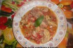 Ceapa taiata marunt se pune la calit in ulei de masline,se adauga putina sare si piper alb,boia dulce,se lasa cca 3 minute si se adauga si morcovul dat pe razatoarea mare,usturoiul taiat marunt,iar ardeiul se taie cubulete.Separat intr-o oala se pun pulpele de pui in apa cu putina vegeta,se lasa...