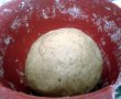 Peste toata compozitia, am adaugat cate putin faina cu praful de copt si am obtinut un aluat din care am format cornulete diferite.