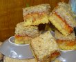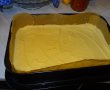 Tapetam o tava - 36/22 cm- cu hartie de copt, apoi intindem compozitia si dam tava la cuptor. Cum sunt in teste cu noul aragaz cu cuptor electric, nu am cronometat la fix timpul. Am setat functia pentru copt prajituri si am dat la 180 grade C, am lasat cca 20 min la cuptor.