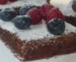 Racim prajitura si ne delectam cu ea dupa ce o pudram, alaturi de de zmeura si afine...ah ce combinatie incredibila, careia i-am declarat dragoste pentru totdeauna :)!