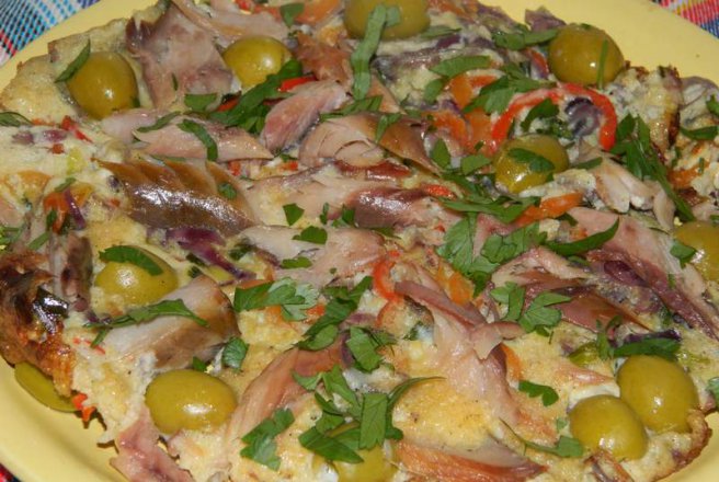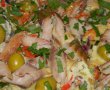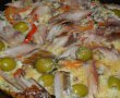 Se pun maslinele si bucatile de peste afumat.