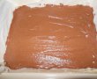 Glazura: Rupem ciocolata bucatele, adaugam untul, laptele si le punem pe baie de aburi. Cand s-a topit in totalitate ciocolata, glazura obtinuta o turnam calda, peste crema rece. O dam la frigider, apoi taiem si servim! Sa aveti pofta!