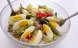 Curatam carofii, ii taiem in 4 sferturi si ii punem la fiert pentru 15 minute, in apa cu un praf de sare.Dupa ce s-au fiert oprim focul si ii lasam deoparte. Intr-o tigaie punem putin ulei si adaugam ceapa tocata solzisori si sunca taiata feliute subtiri. Lasam sa se caleasca. Adaugam si...