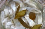 se curata pestele,se taie in felii de 1-2 cm si se presara cu un pumn de sare.se lasa peste noapte la frigider.intre timp se prepara marinata:se fierbe otetul,apa,o lingura de sare si condimentele(cat sa dea un clocot-doua),apoi se lasa la racit.a doua zi pestele se clateste cu multa apa rece si...